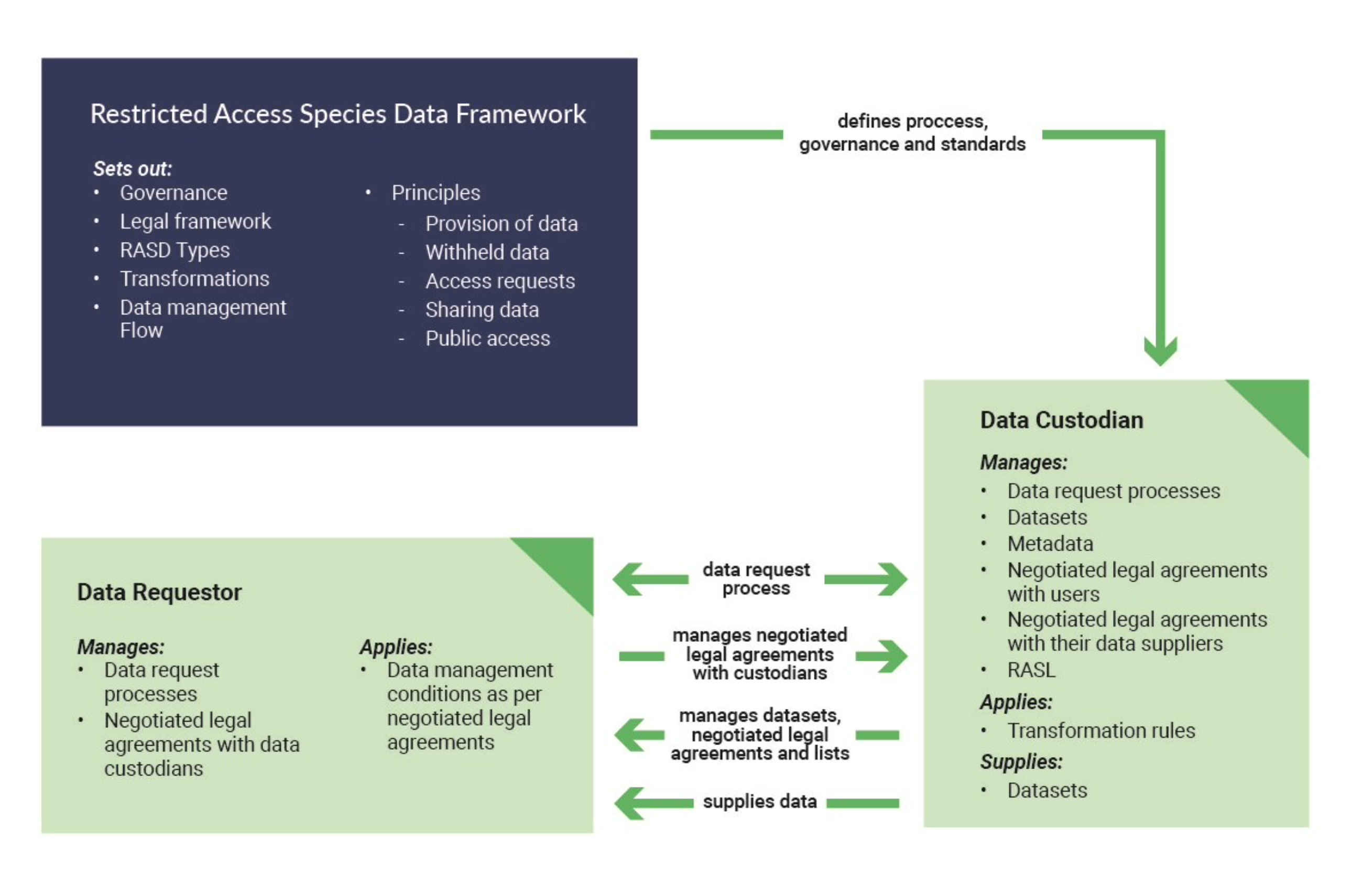 This framework is maintained by the Atlas of Living Australia in consultation with the national community of practice, the Australian Biodiversity Information Governance Group (AusBIGG), which includes representatives from the jurisdictions around Australia as well as the Terrestrial Ecosystem Research Network, the Atlas of Living Australia, the Council of Heads of Australasian Herbaria, and the Council of Heads of Australian Fauna Collections.